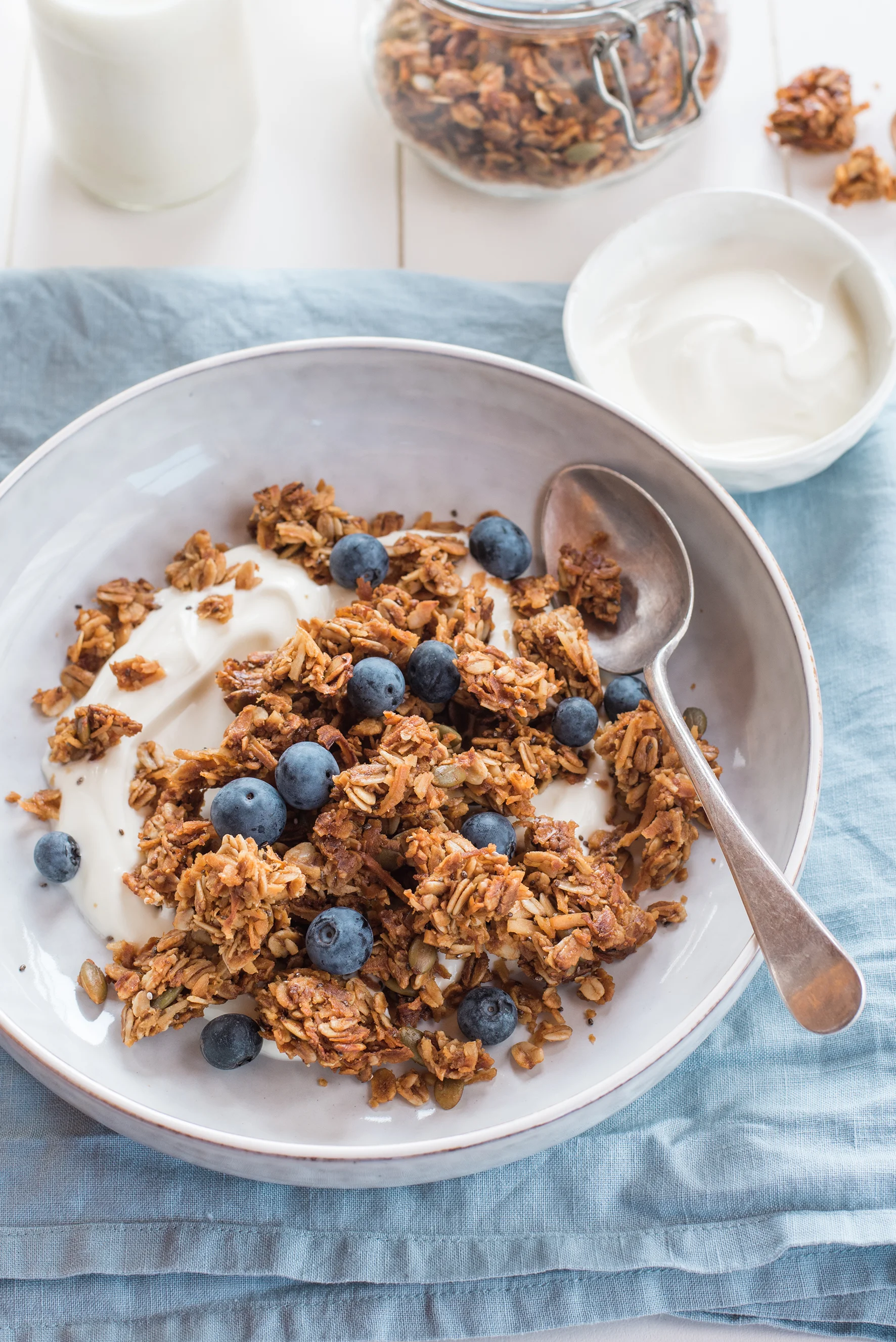 Serve with yoghurt, milk and seasonal fresh fruit. Keep muesli in an airtight container.