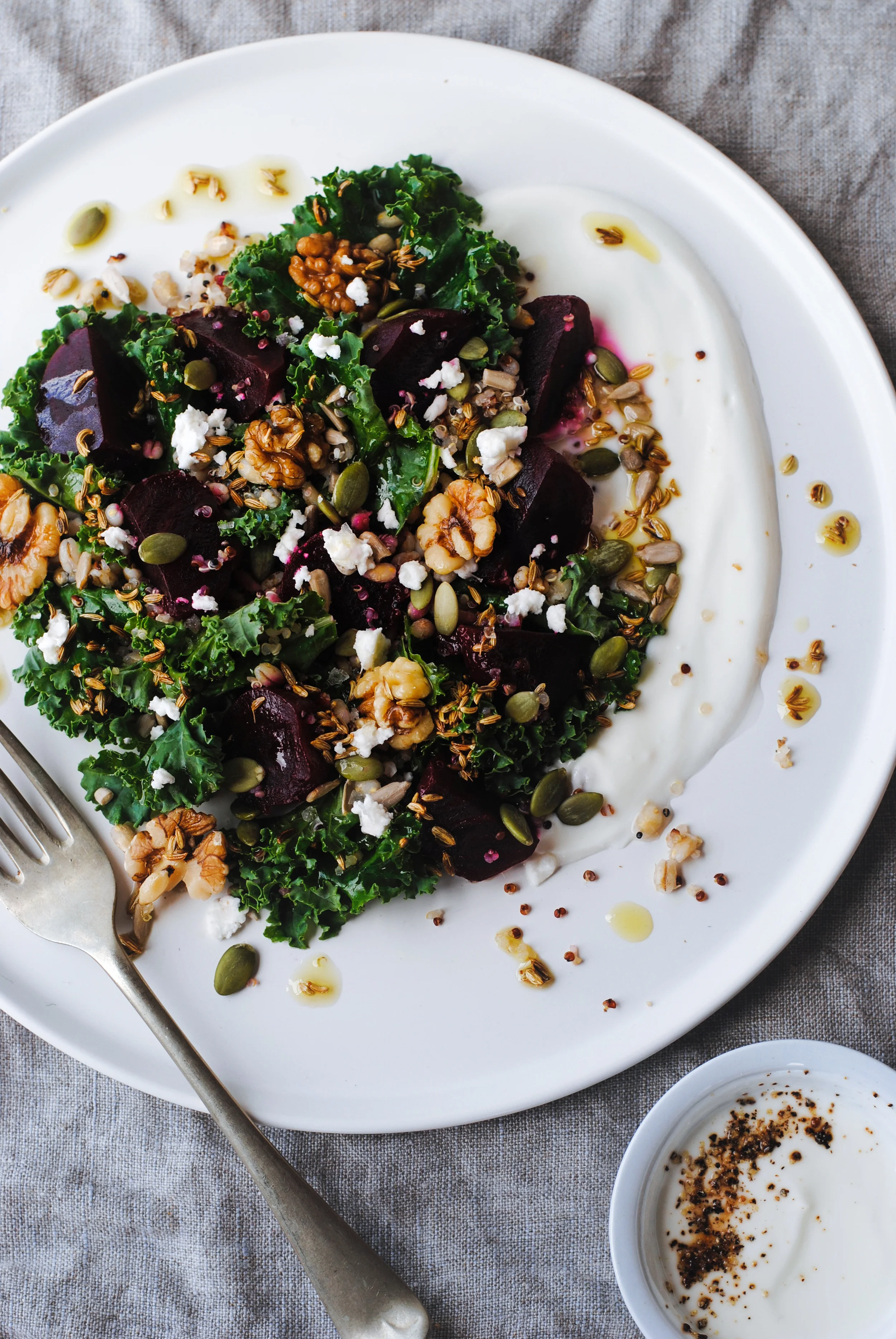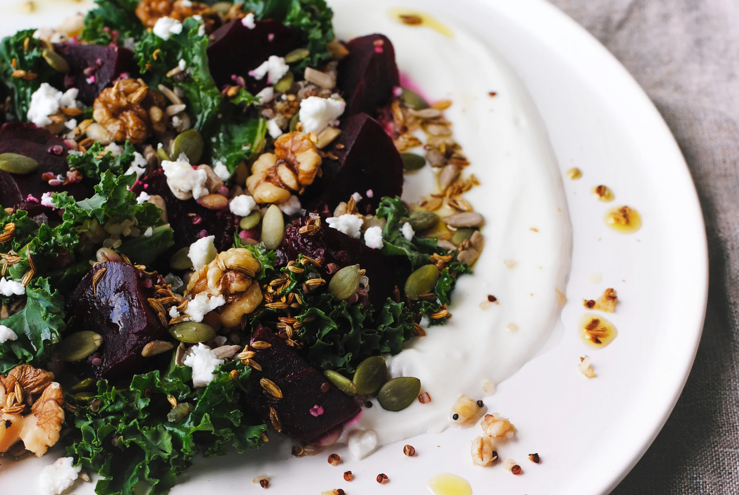 BEETROOT, KALE, FENNEL SEED & WHIPPED GOATS CHEESE SALAD