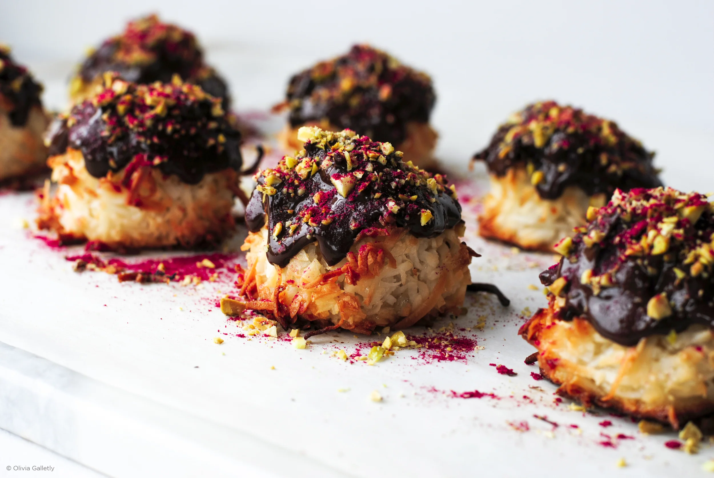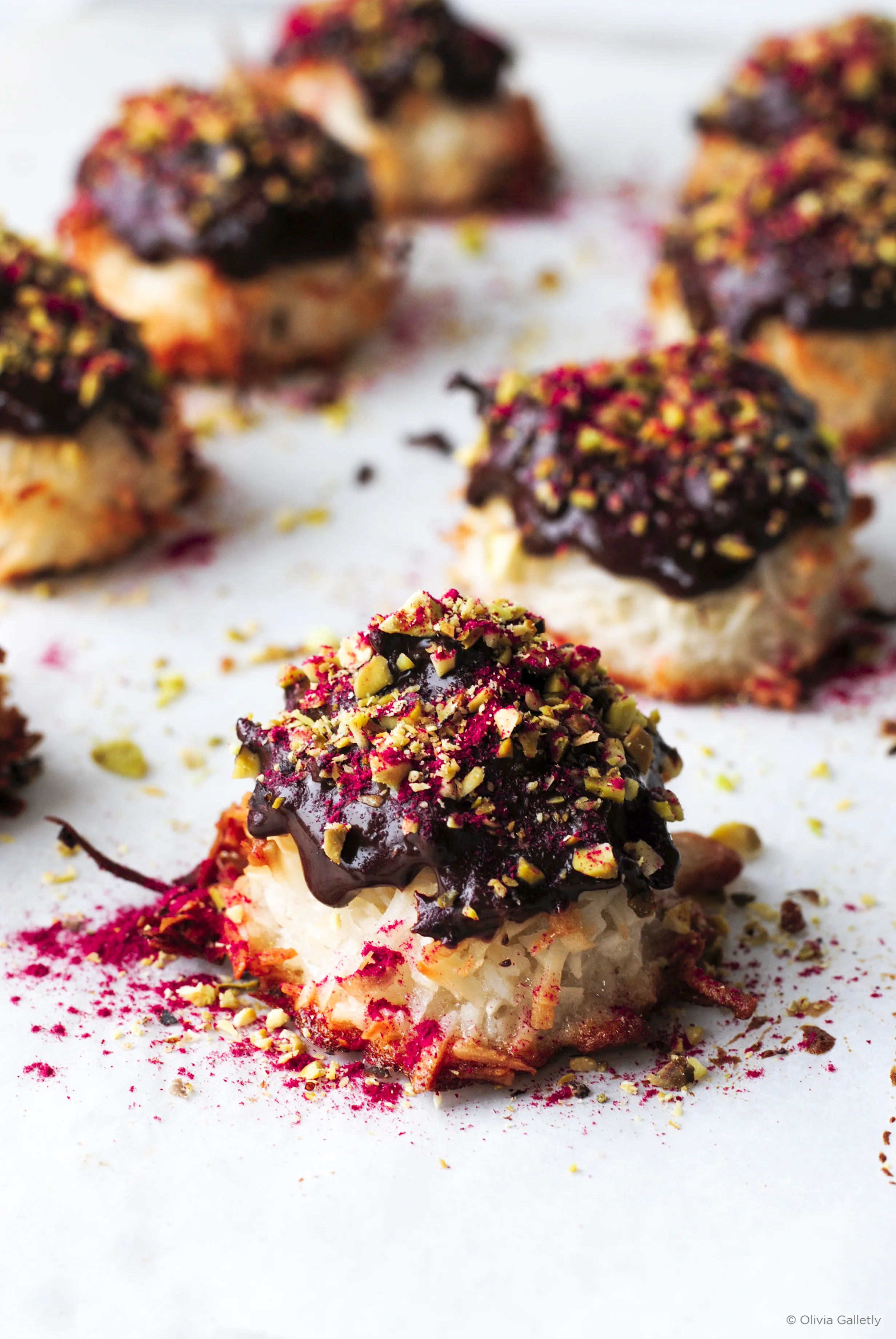 COCONUT, PISTACHIO & RASPBERRY MACAROONS