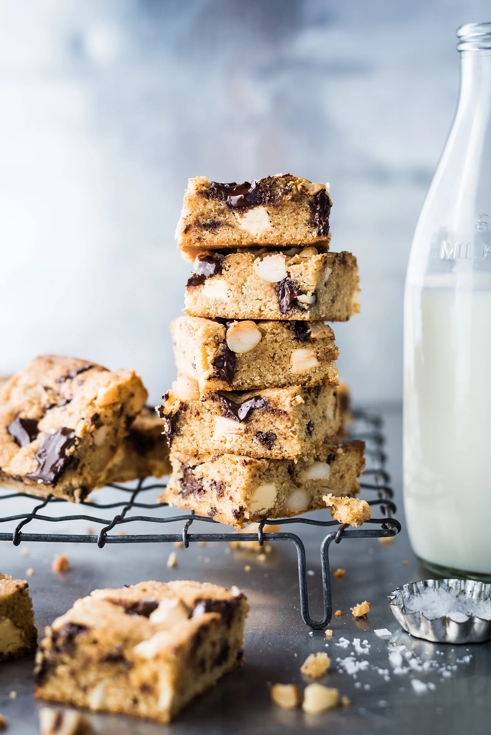 Obsessing over these gooey cookie bars at the moment. Salty vanilla base dotted with dark and white chocolate and macadamia nuts. You could add any delicious crunchy treats to these bars eg, pretzels, corn flakes or peanuts!
