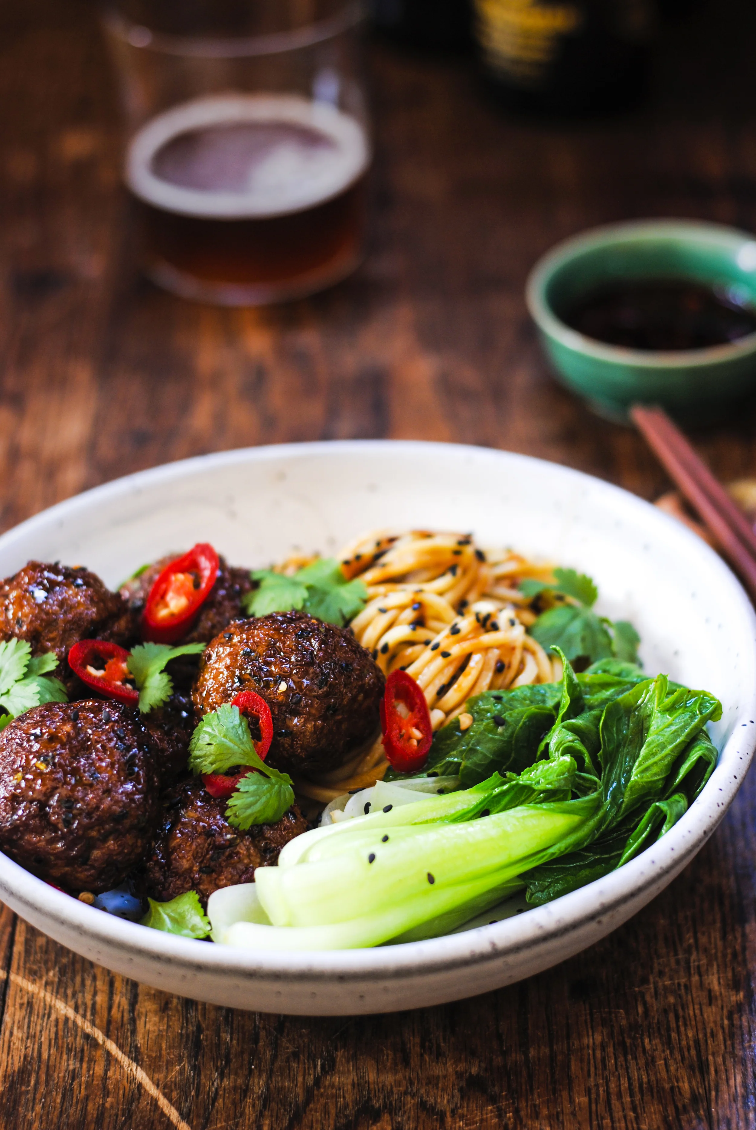 These meatballs are so sweet and aromatic. Cooked in a sticky soy sauce and served with sesame noodles and your favourite Asian greens. A really easy weeknight meal.